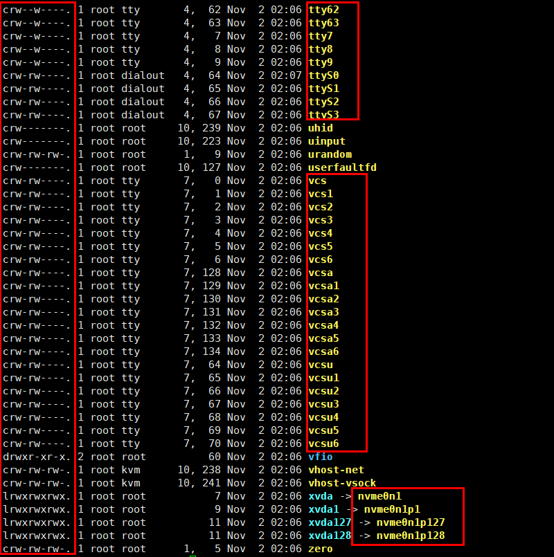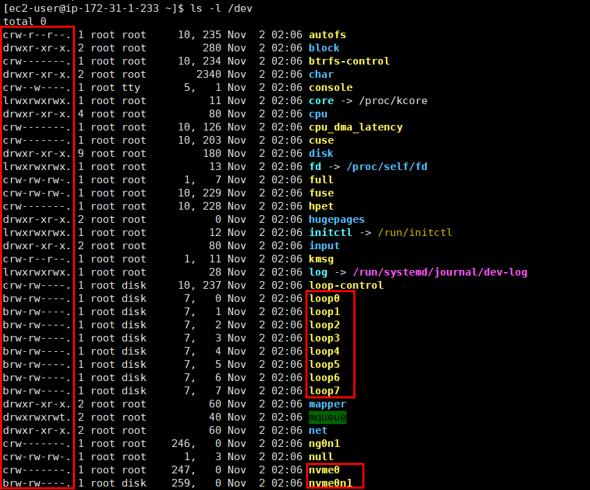 디바이스 파일은 /dev 아래에 있음