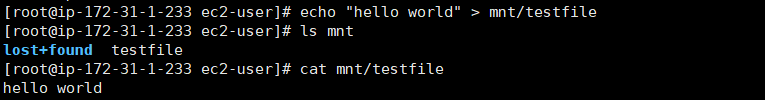 마운트하고 파일에 문자열 기록해서 출력함