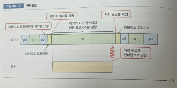 → 인터럽트를 장치 처리 완료 확인 방법으로 사용하는 경우가 많다
