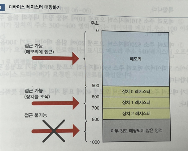 MMIO로 장치를 조작하면 주소 공간에 메모리와 레지스터도 매핑함 → 장치 0 ~ 장치 2 존재하는 시스템