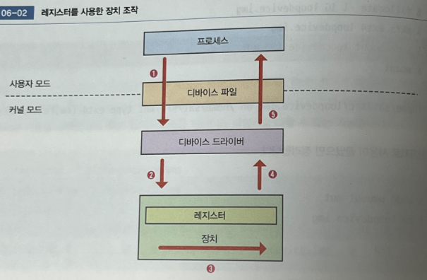 1 디바이스 드라이버가 장치에 처리 요청함