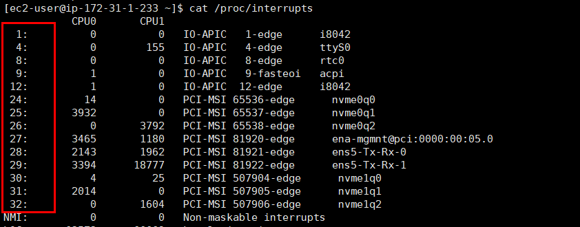해당 서버 인터럽트 조회